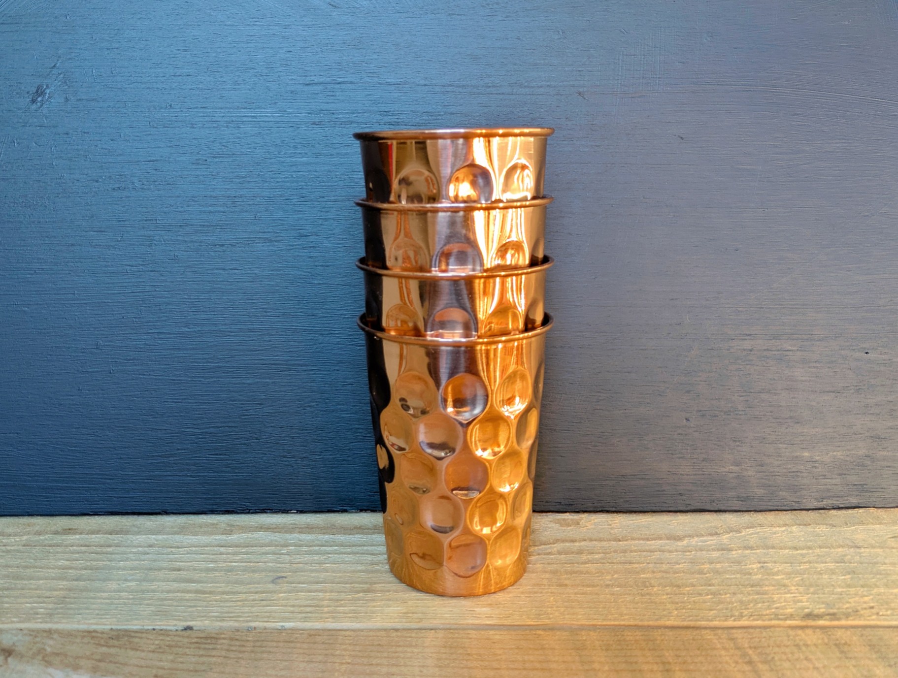 These beautiful pure copper beakers were produced primarily as a health aid and secondarily for their eye catching design.