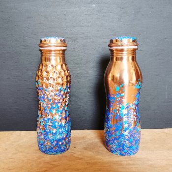 Dunya Ayurveda brings you the most unique and highest quality copper bottles and cups so you also can reap these many benefits. All our copper utensils are hand made and painted; 99% copper, the highest attainable purity; tested for lead and produced in small scale, ethically ran factories.