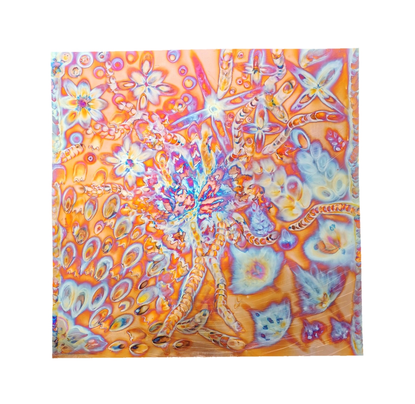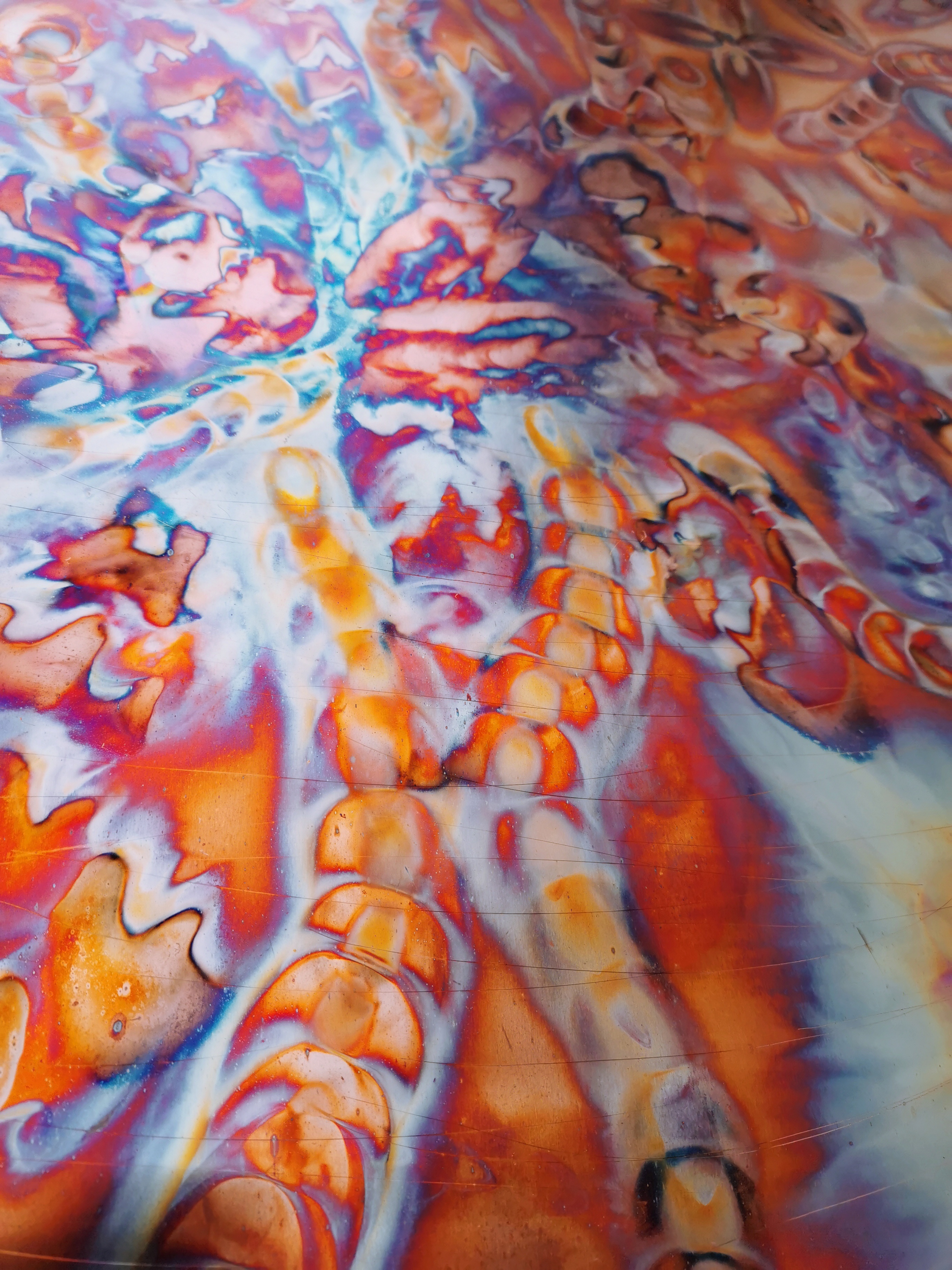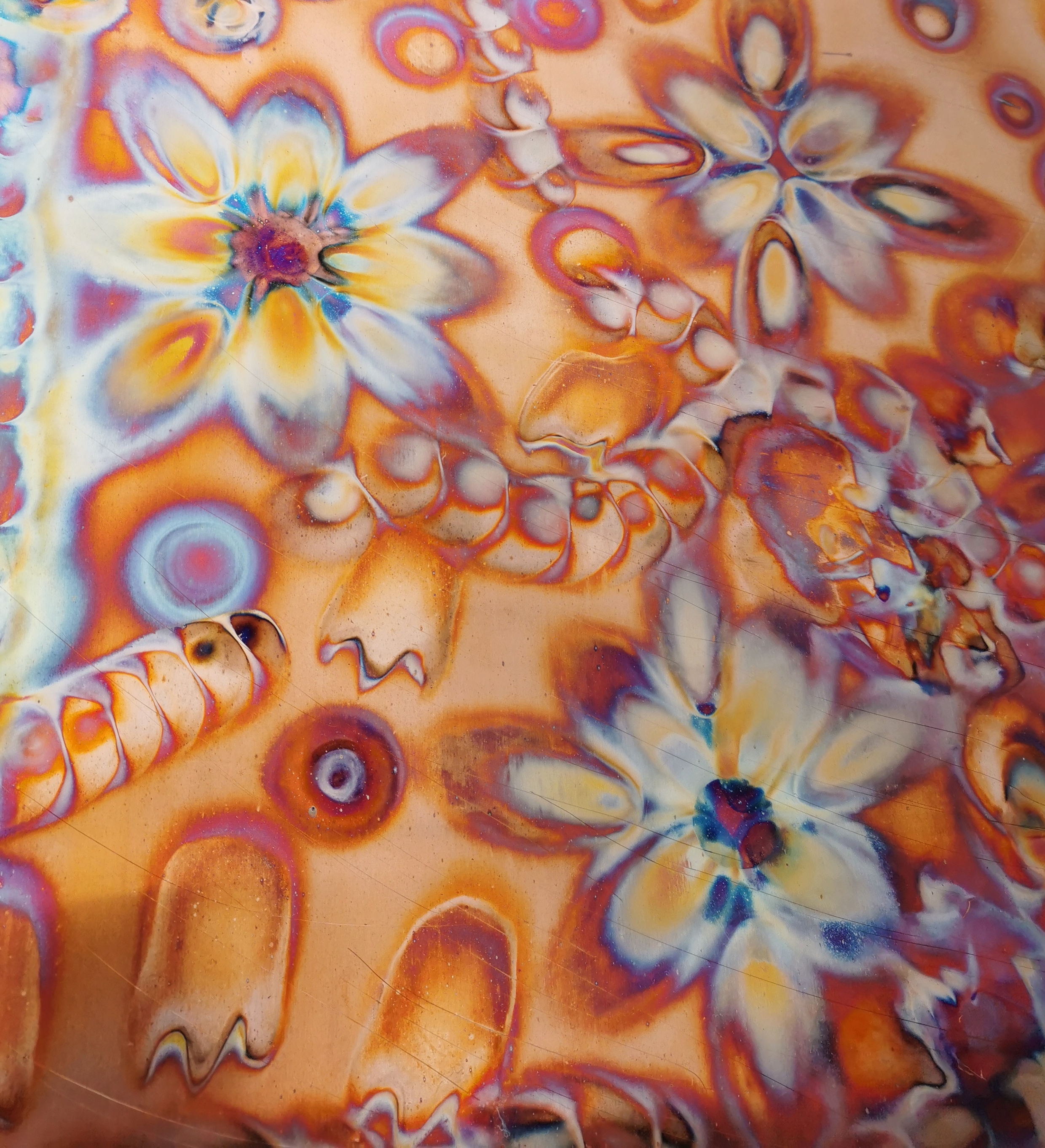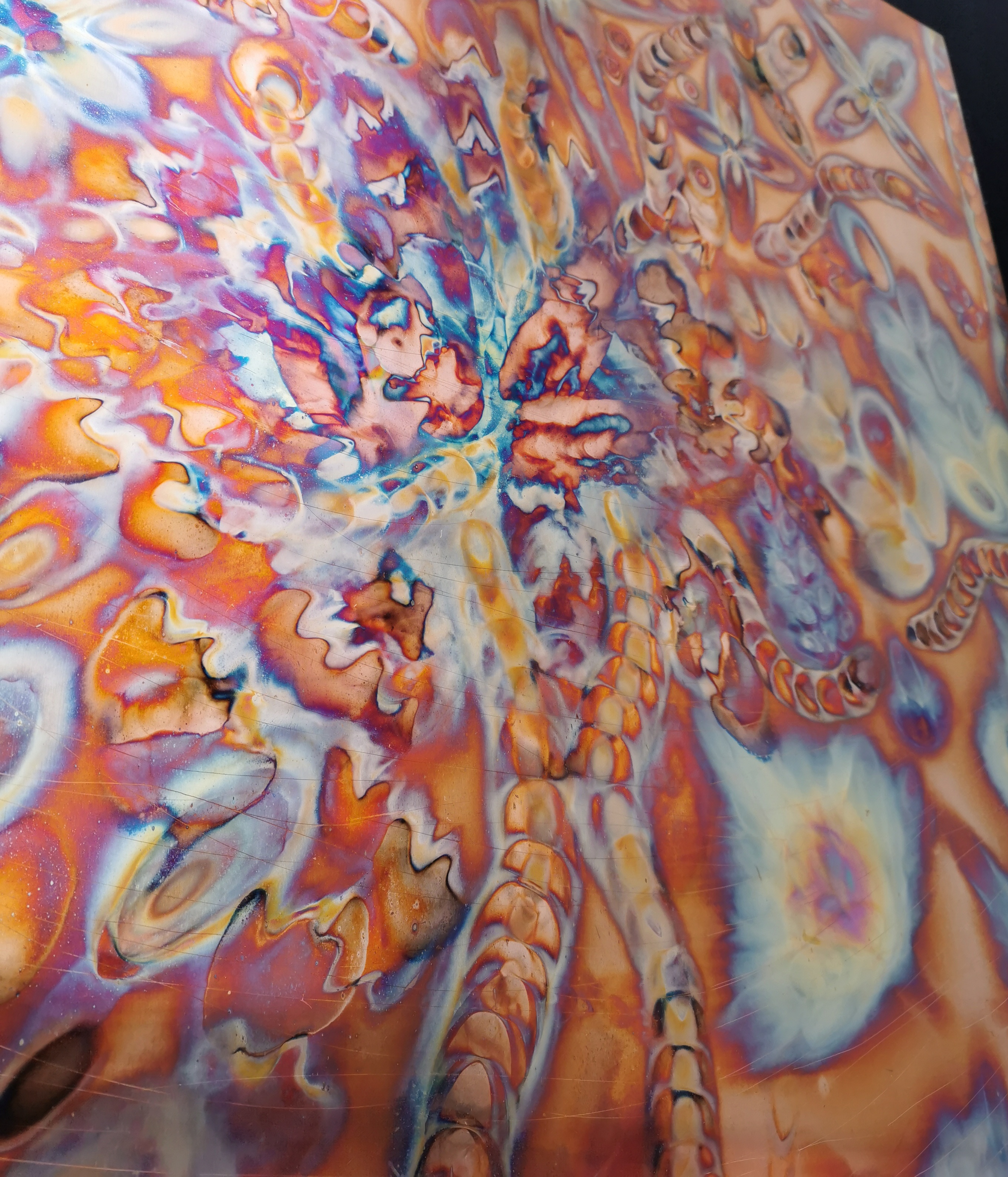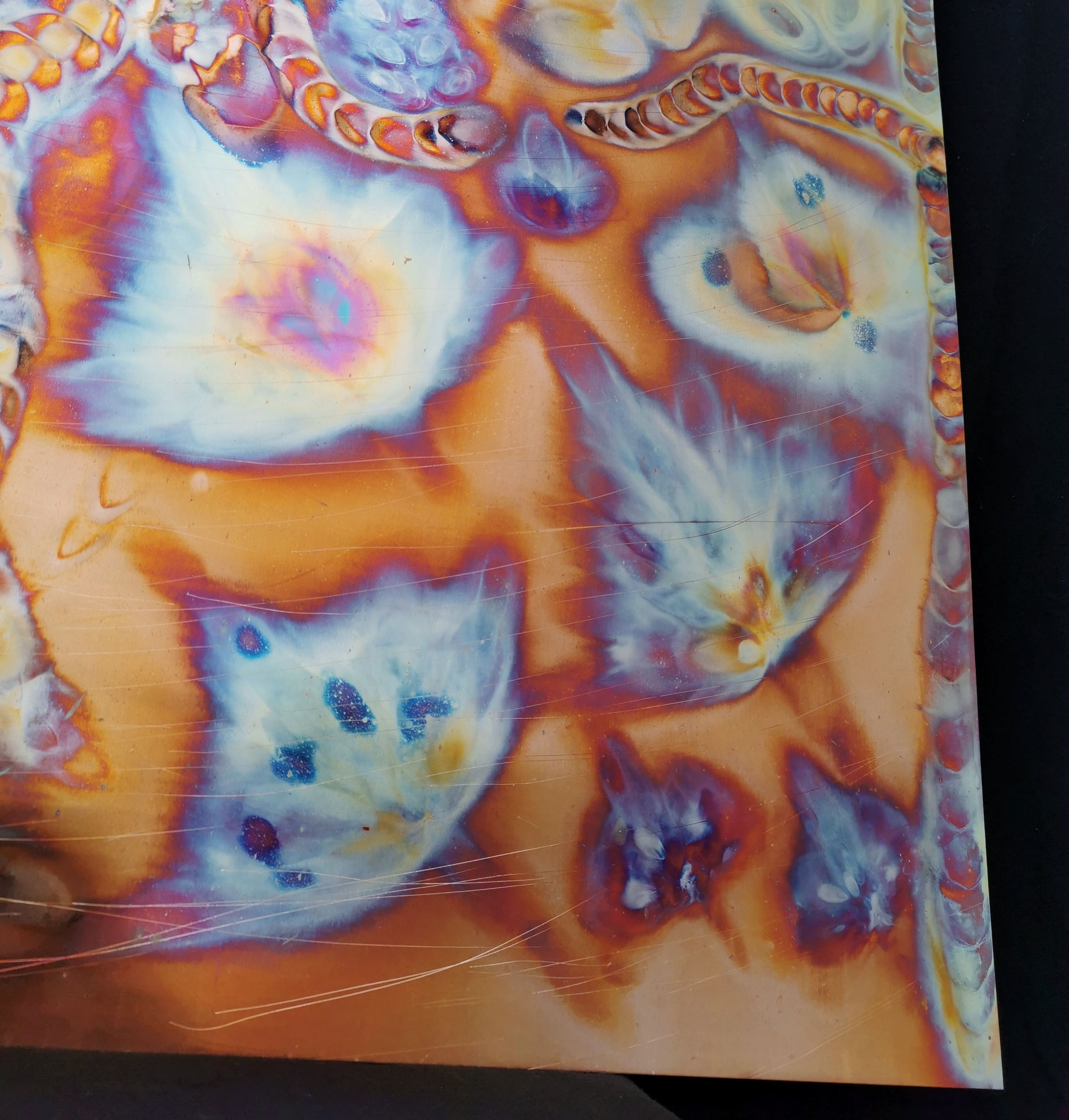 My first collection, The Core, is a visual representation of the earth and its principles. The images are achieved through naturaly occurring reactions that emerge with the application of various chemical elements onto pure copper.
