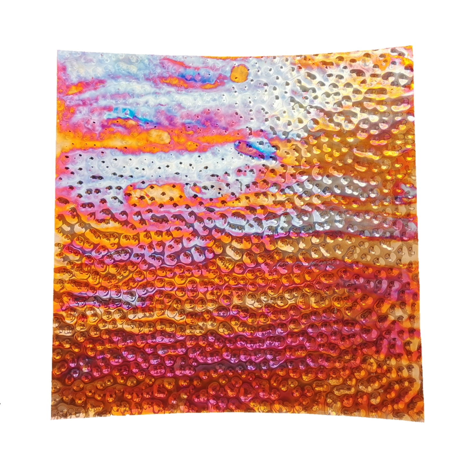 pure copper hand hammered and flame painted 50cm x 50cm x 0.09cm