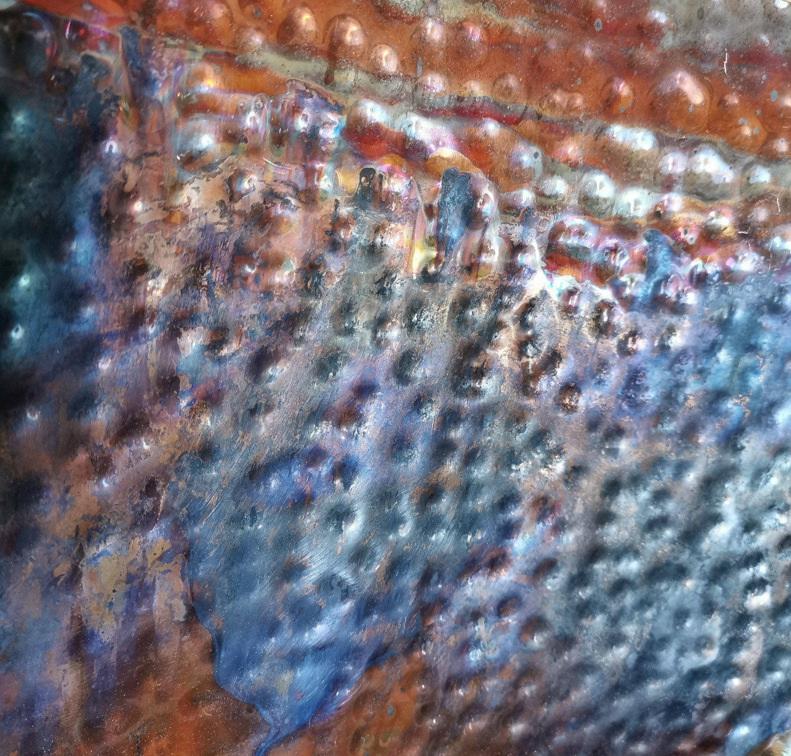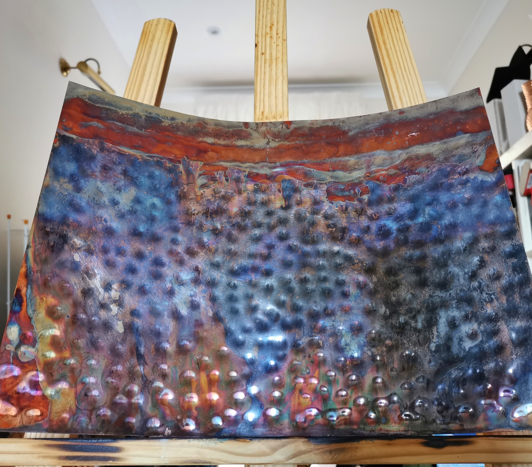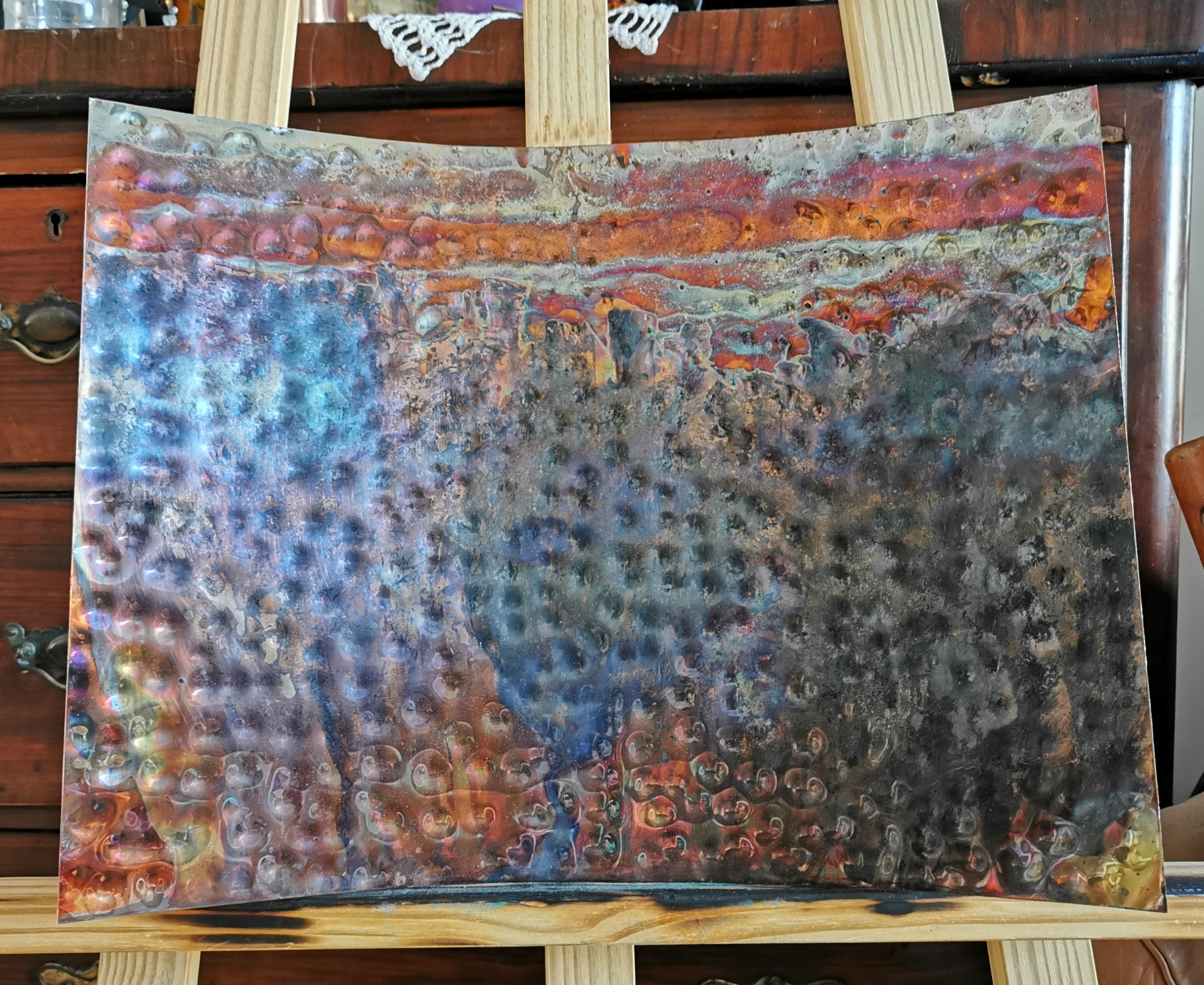 pure copper flame painted and treated with sulphur 40cm x 30cm x 0.09cm