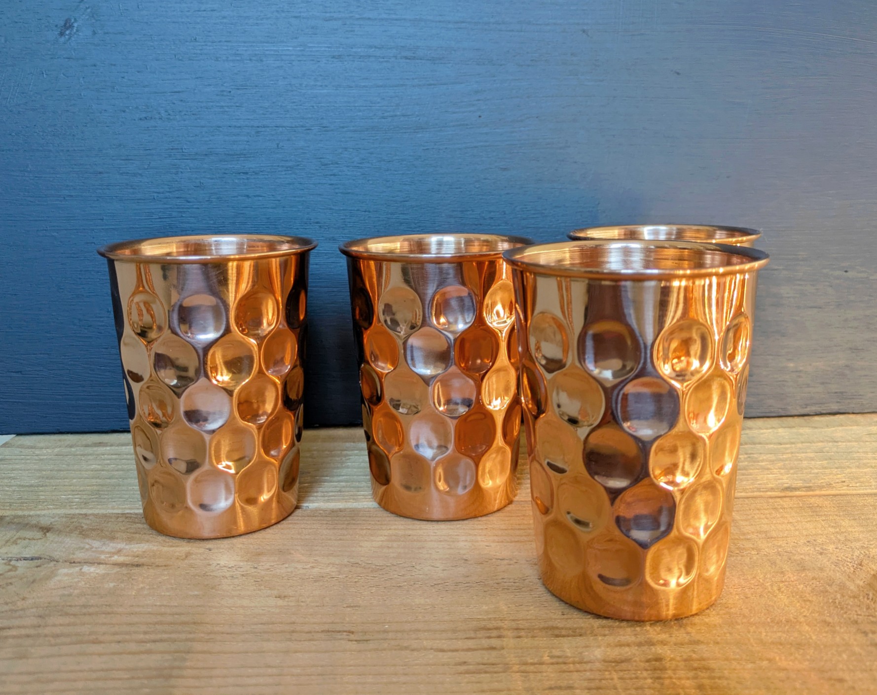 These beautiful pure copper beakers were produced primarily as a health aid and secondarily for their eye catching design.
