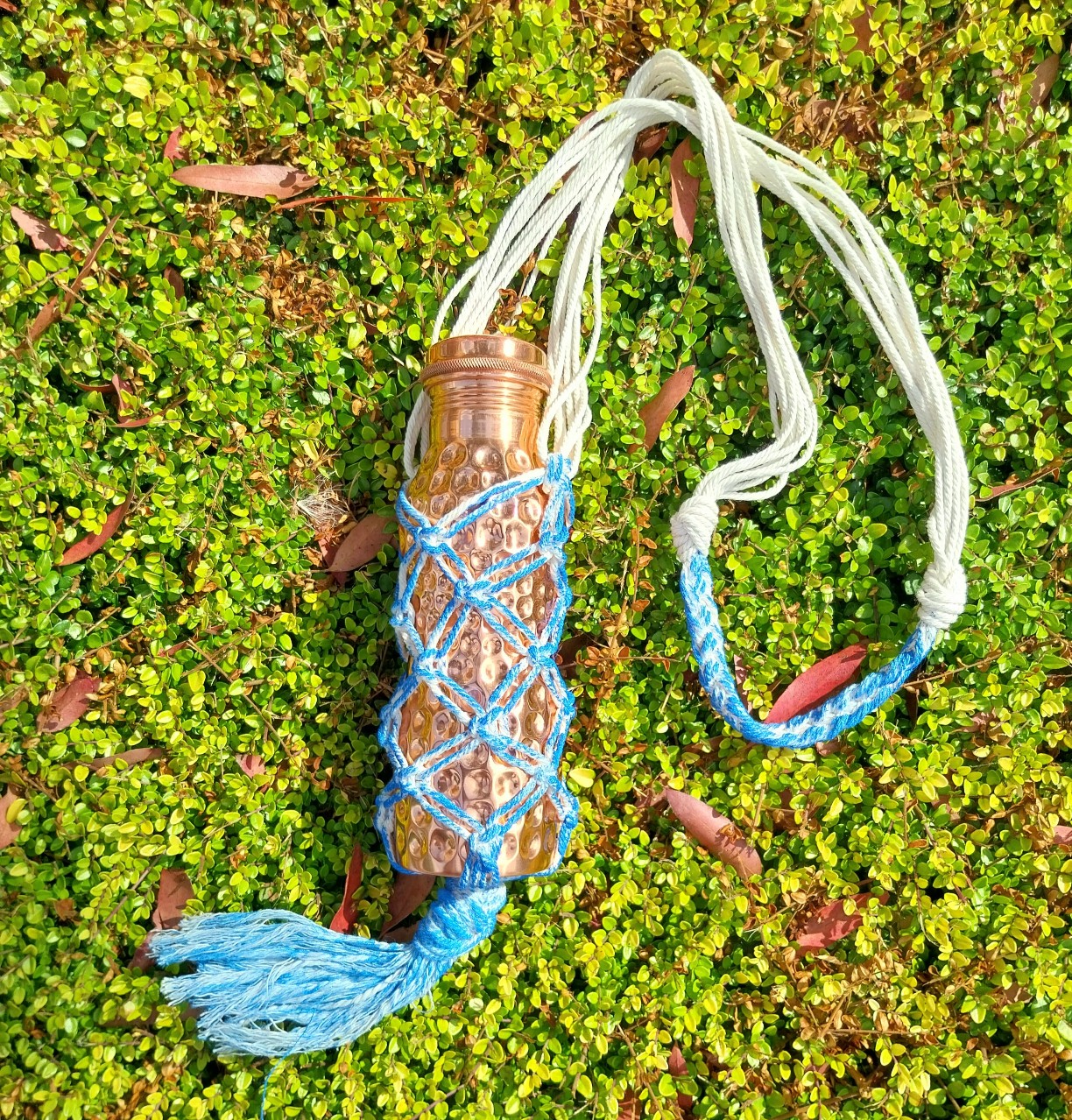 Macrame bottle bags are so convenient if you don't want to carry a big bag with you, and can also be used at home to display your bottle collection, be they wine or water bottles.