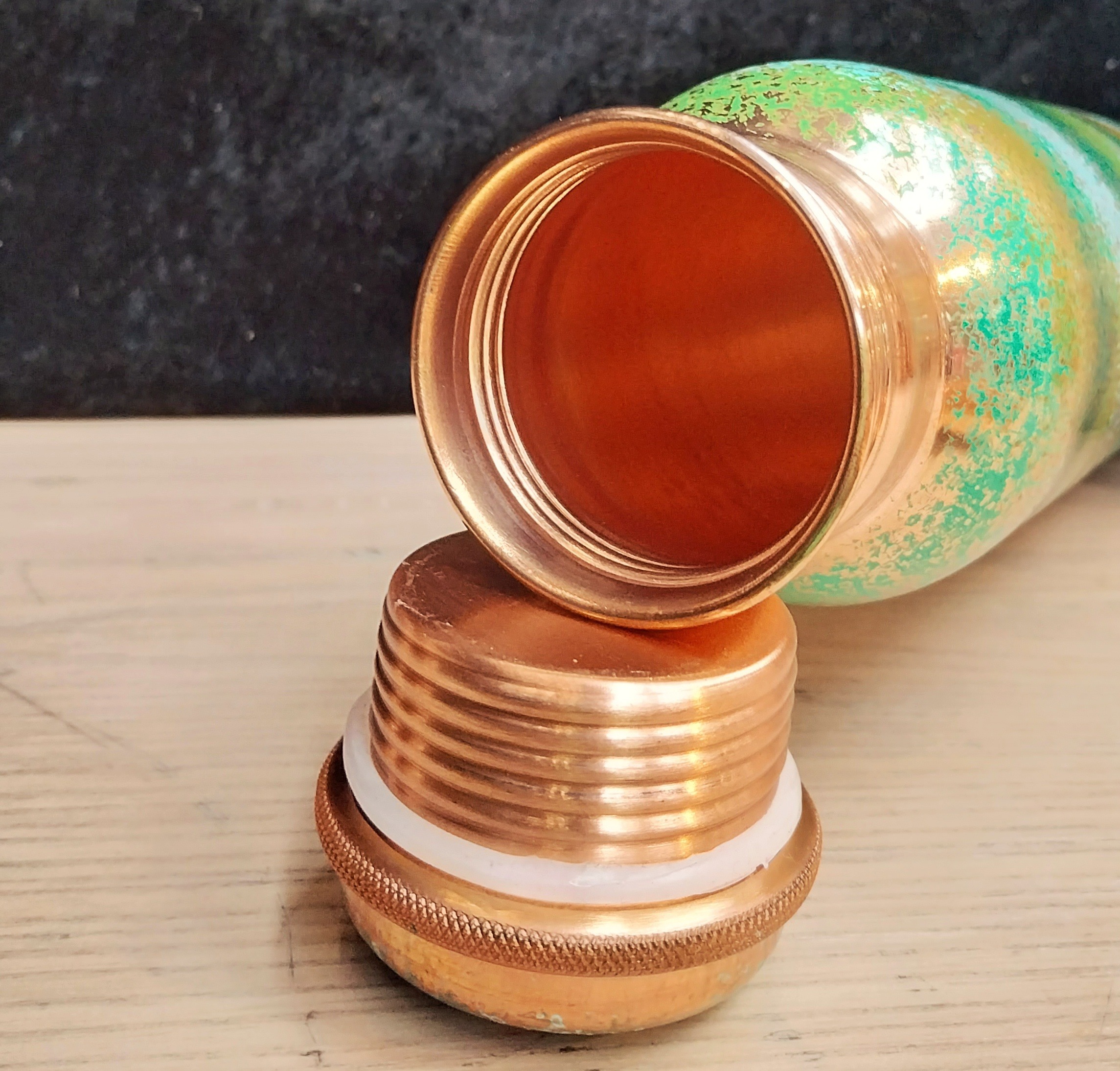 These beautiful pure copper bottles were produced primarily as a health aid and secondarily for their eye catching design. Each one is hand made and hand painted so no two bottles will ever be exactly alike. There are many copper bottles available to buy online, but a large percentage of them are actually produced in large-scale factories where quality control might not be up to scratch. My copper bottles are made on a small scale; are quality controlled to the most minute detail; are tested for lead and are made from 100% pure copper