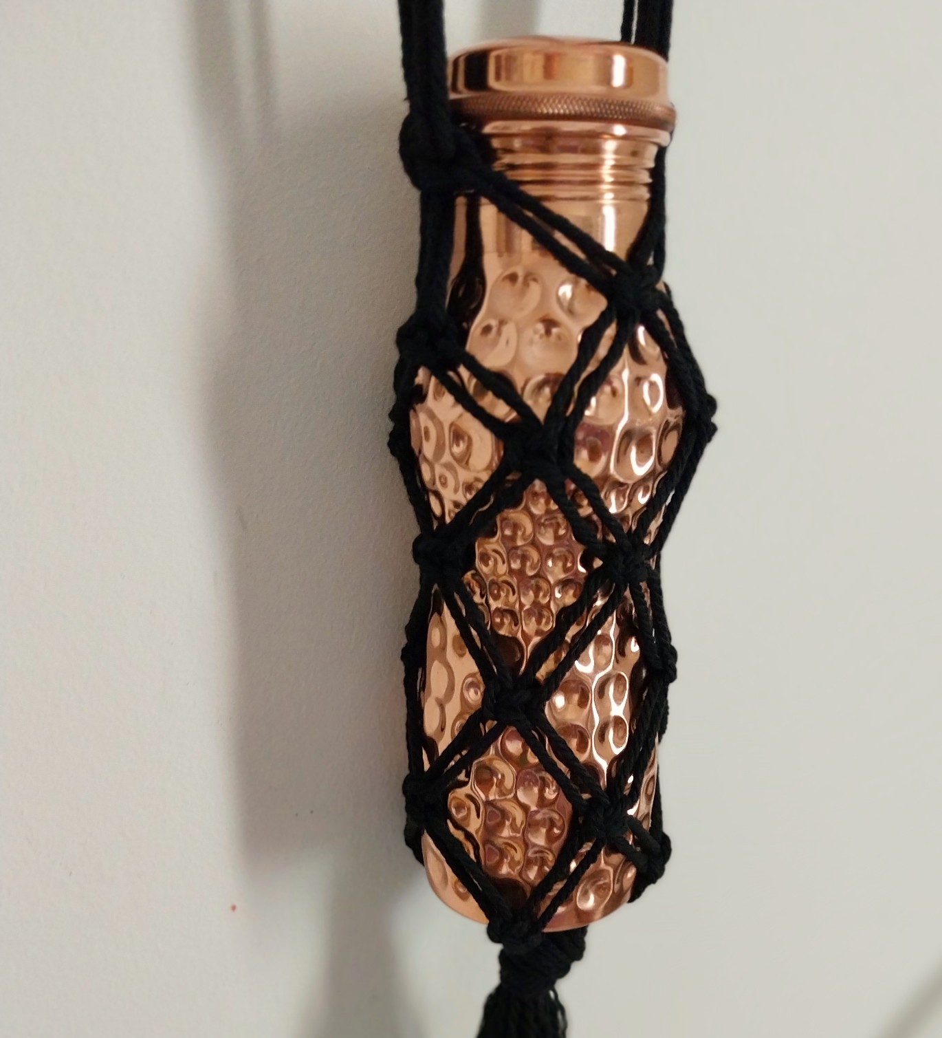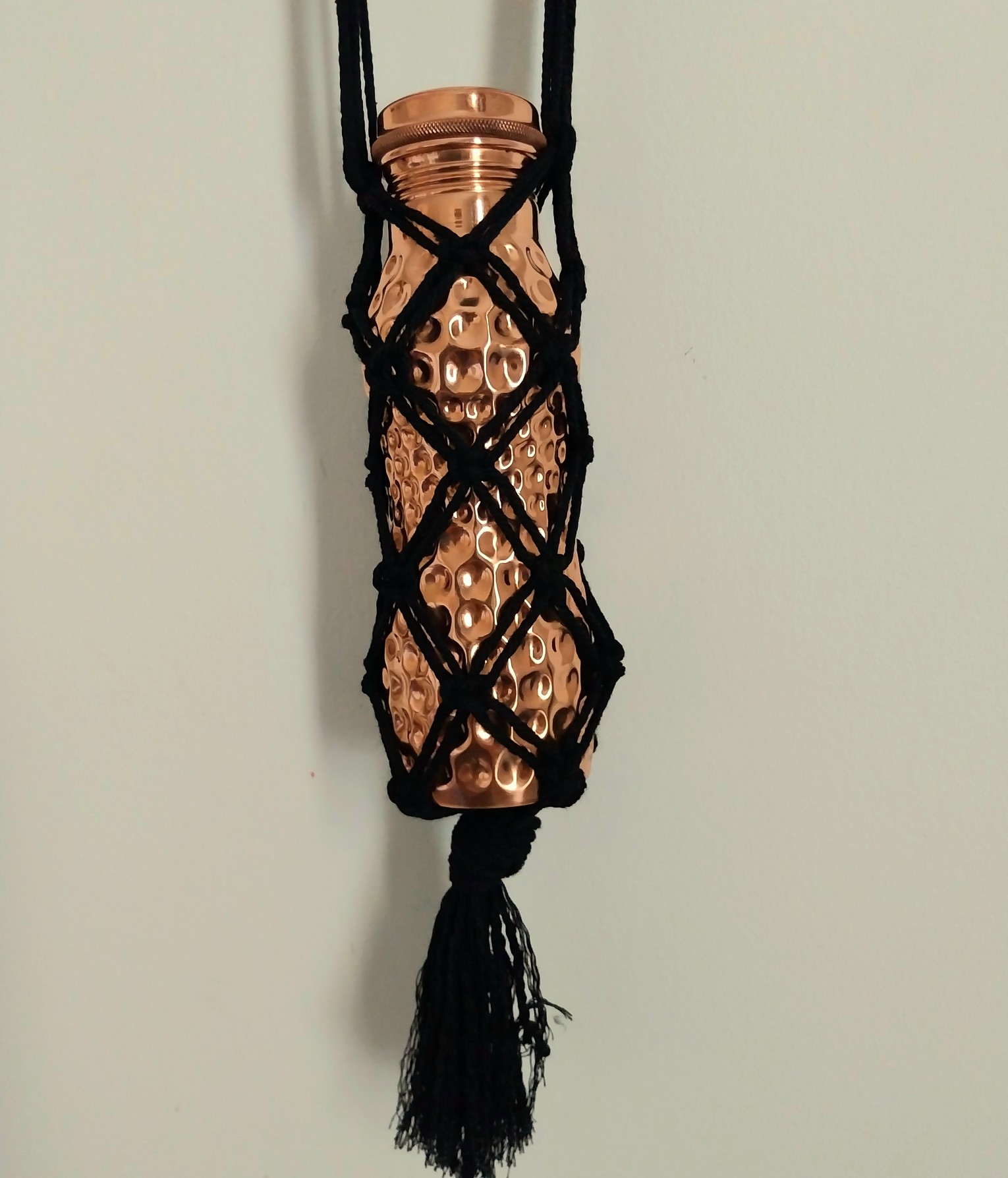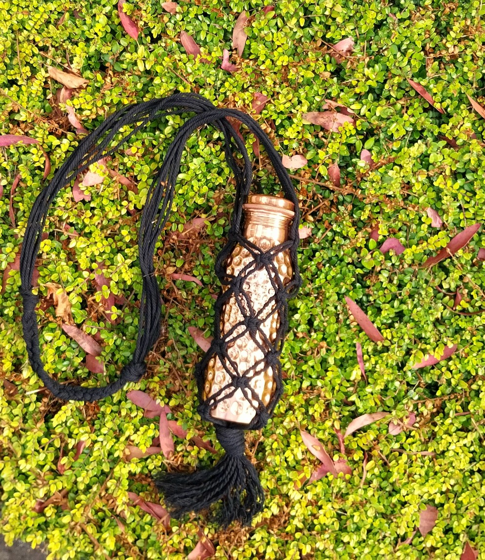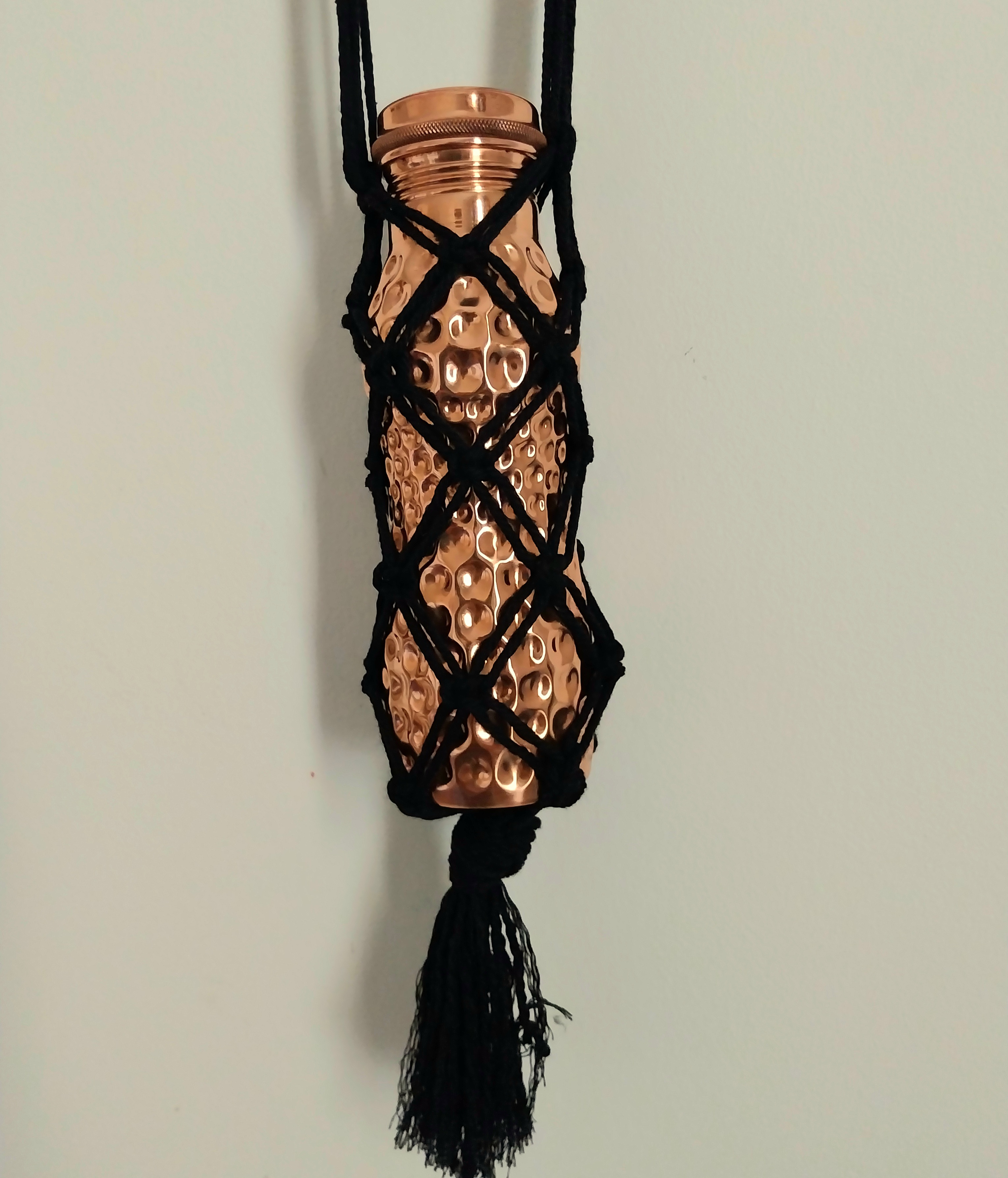 Macrame bottle bags are so convenient if you don't want to carry a big bag with you, and can also be used at home to display your bottle collection, be they wine or water bottles.