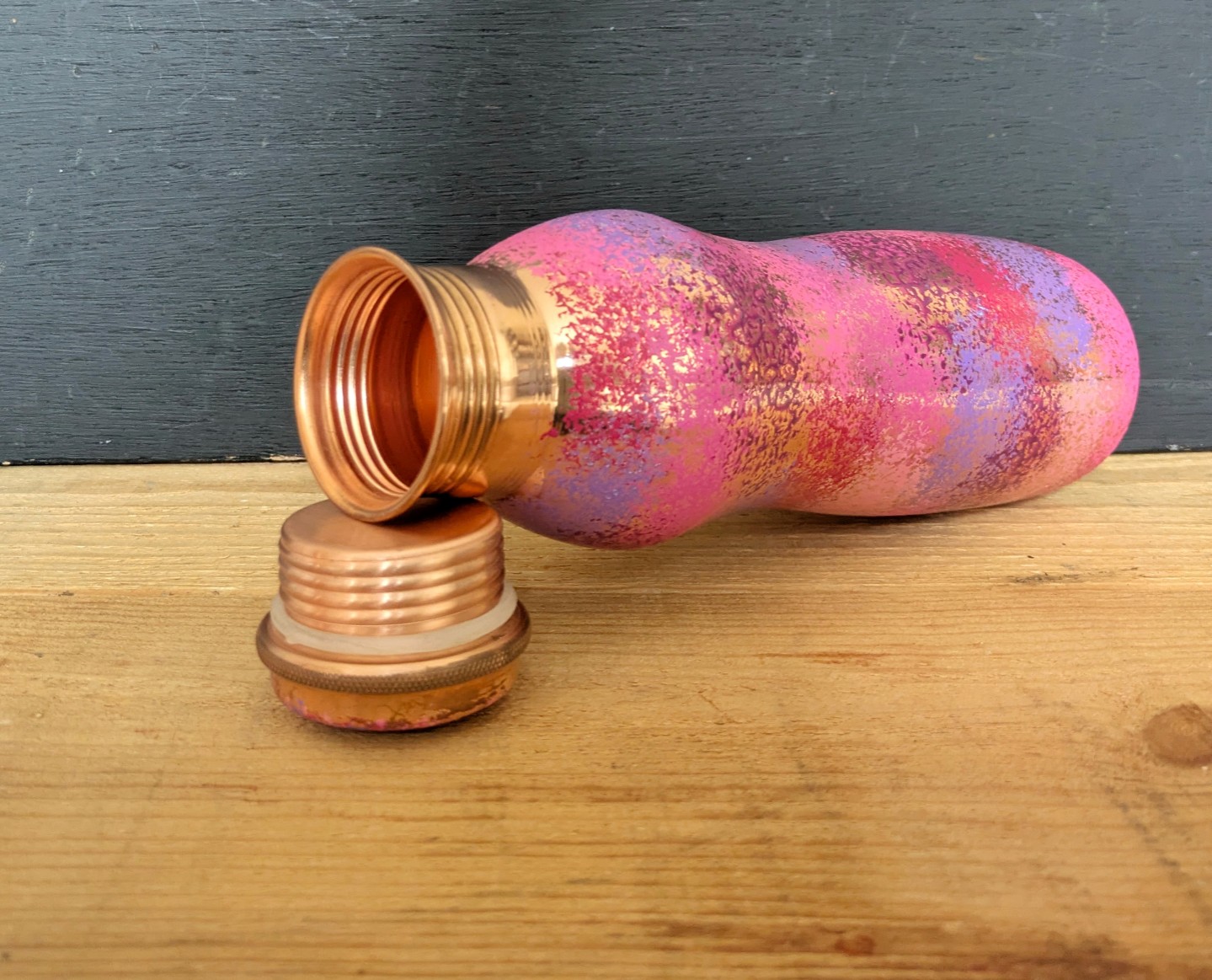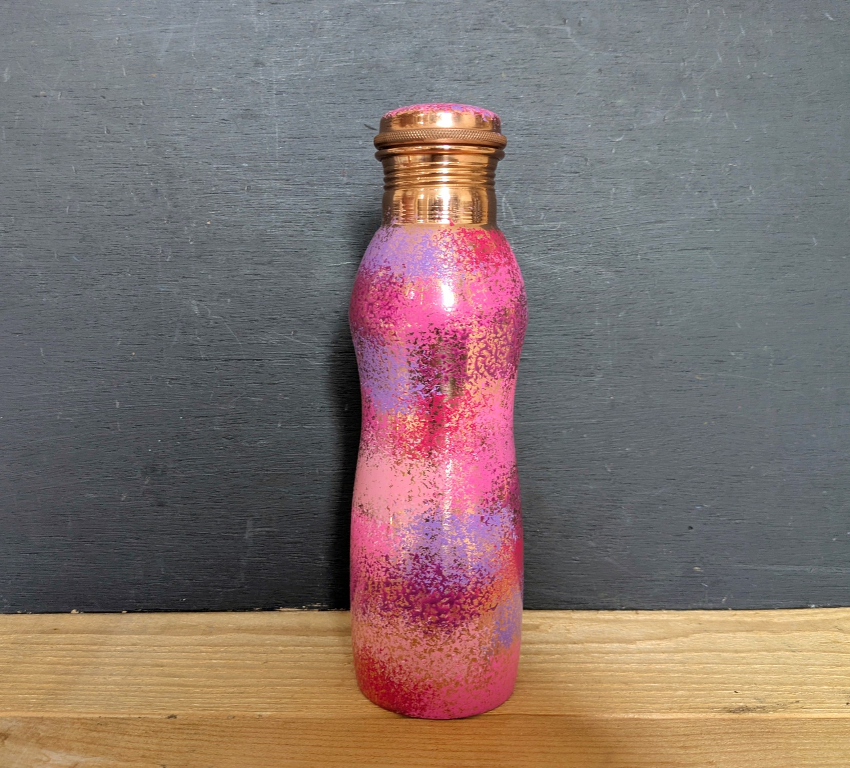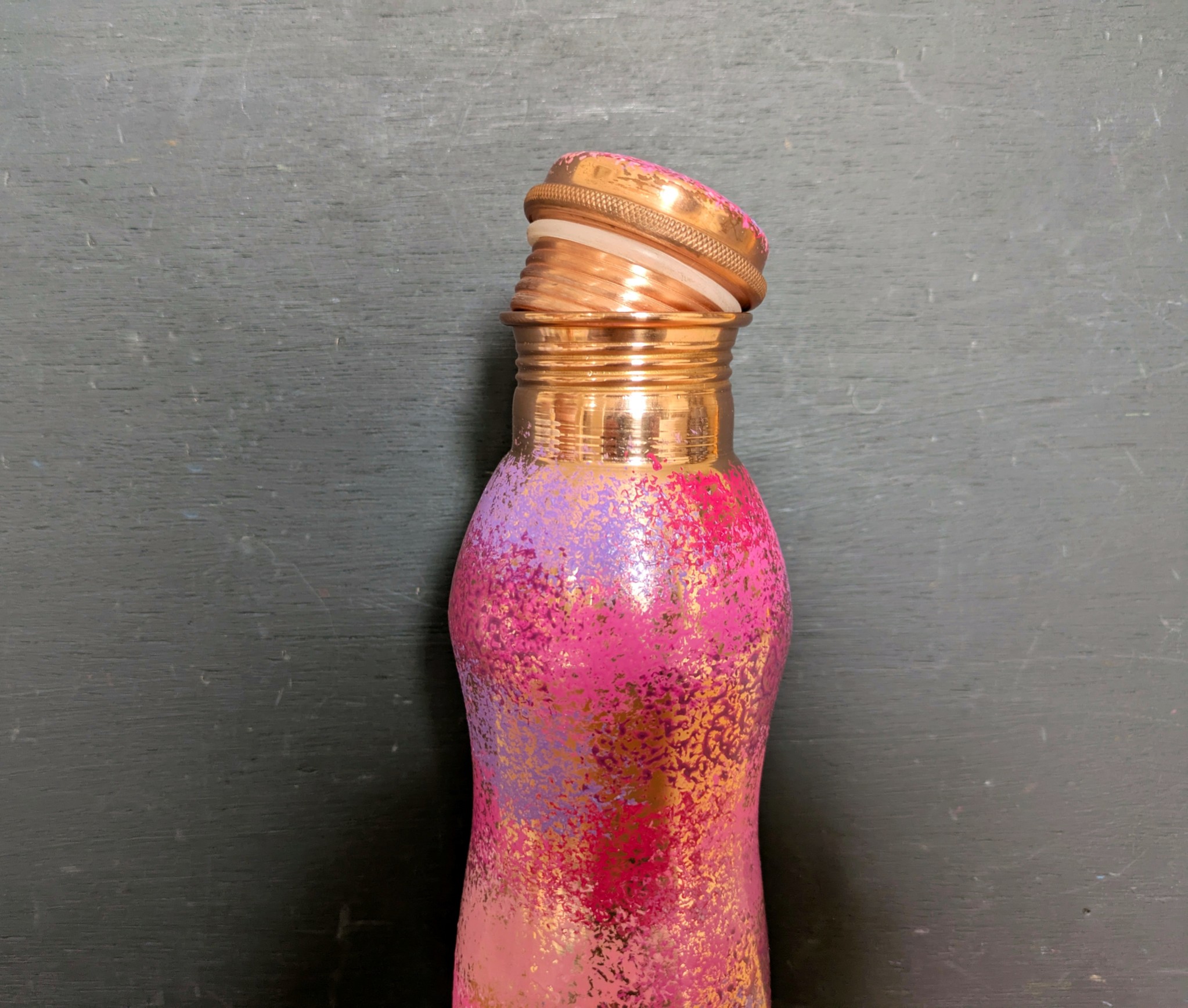 These beautiful pure copper bottles were produced primarily as a health aid and secondarily for their eye catching design. Each one is hand made and hand painted so no two bottles will ever be exactly alike. There are many copper bottles available to buy online, but a large percentage of them are actually produced in large-scale factories where quality control might not be up to scratch. My copper bottles are made on a small scale; are quality controlled to the most minute detail; are tested for lead and are made from 100% pure copper