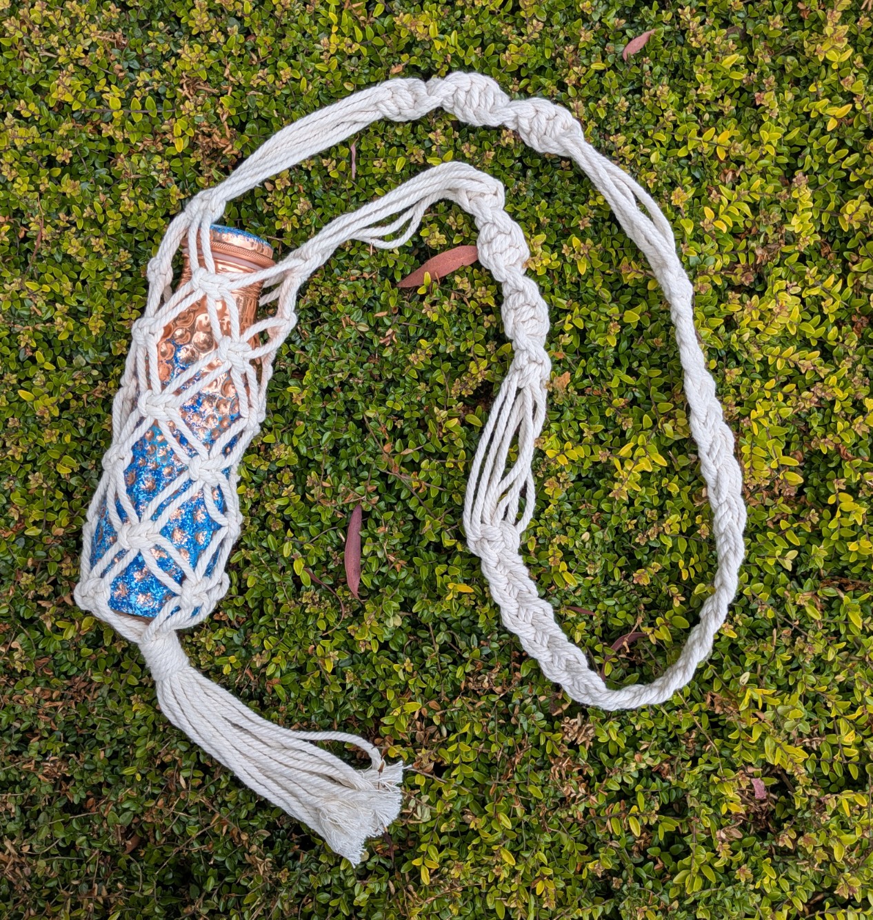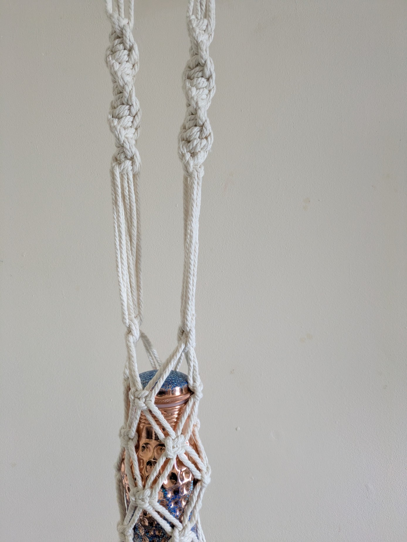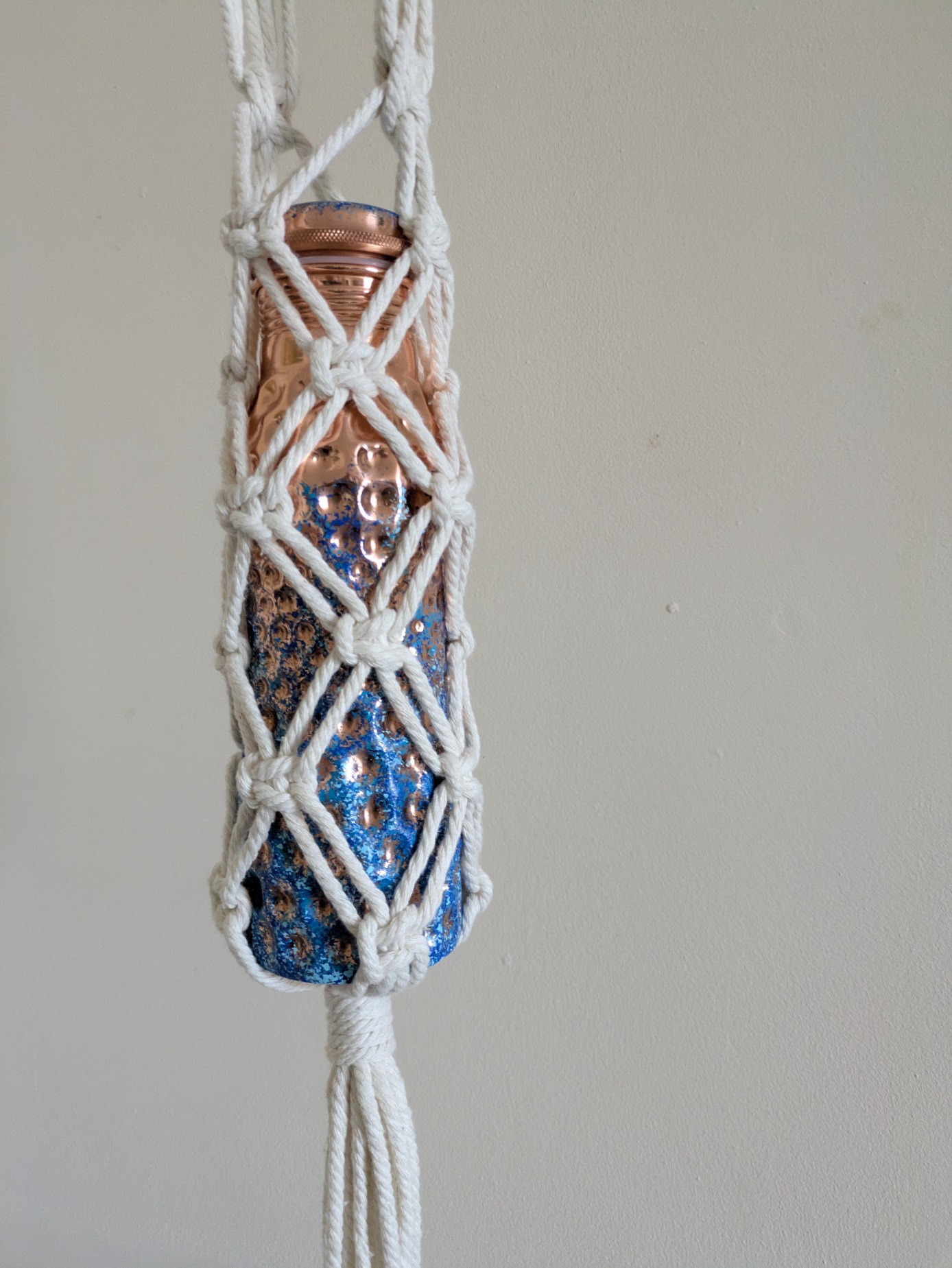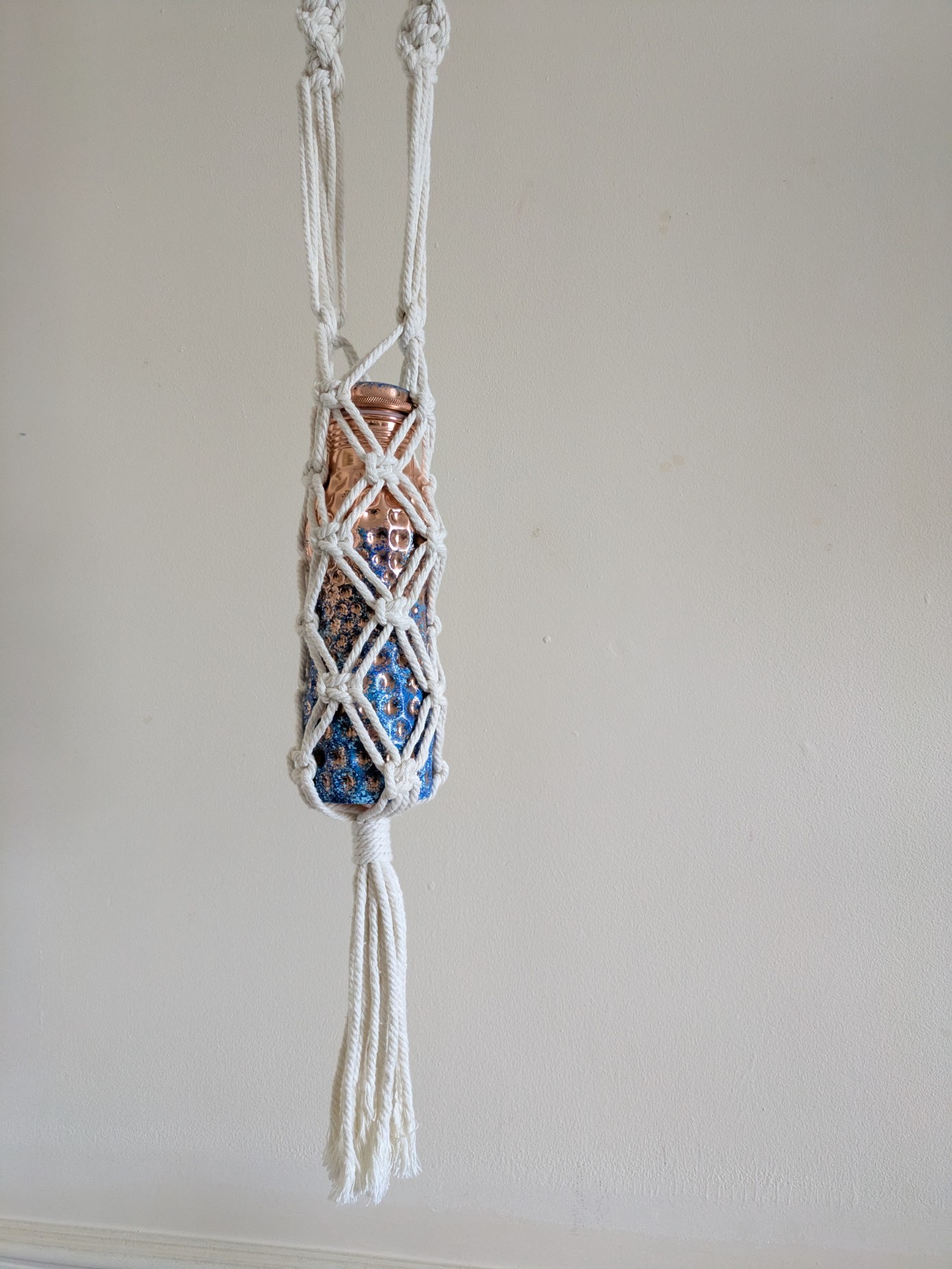 Macrame bottle bags are so convenient if you don't want to carry a big bag with you, and can also be used at home to display your bottle collection, be they wine or water bottles.